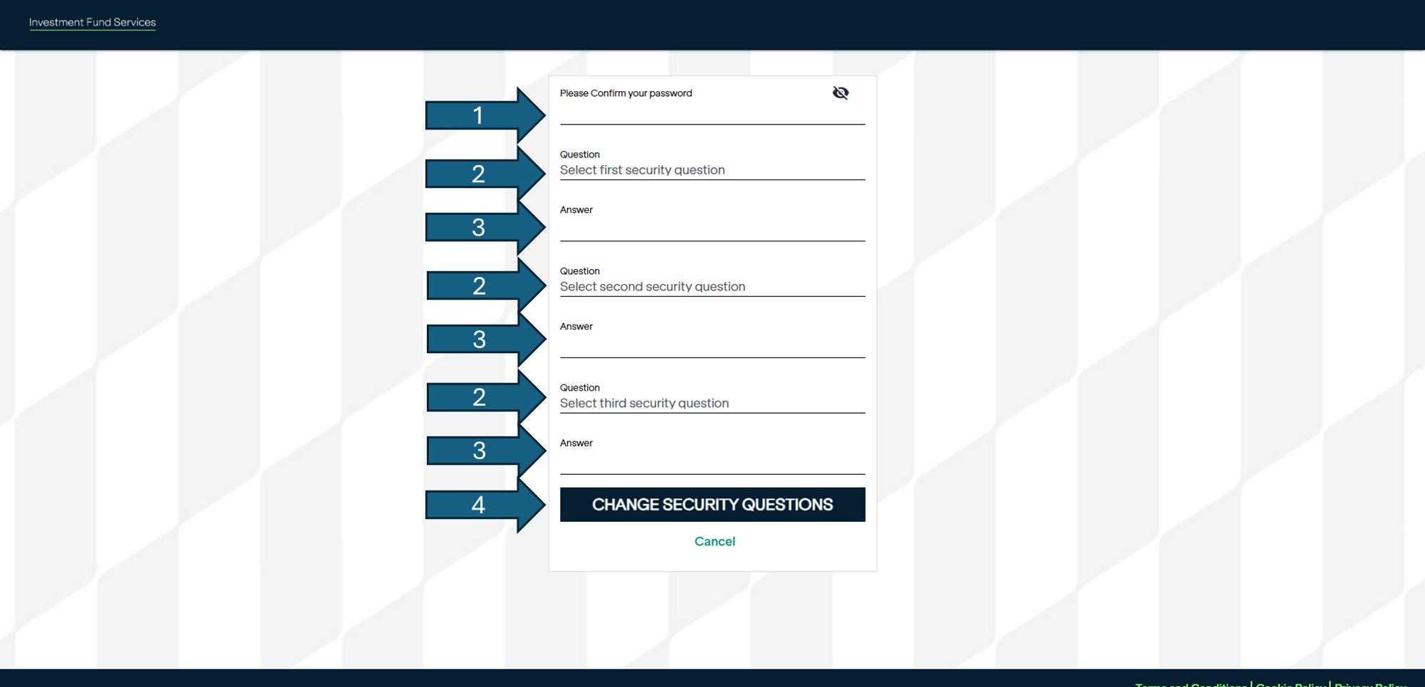 2 & 3. Select a security questions and type an answer. Note - You will have to do this 3 times
