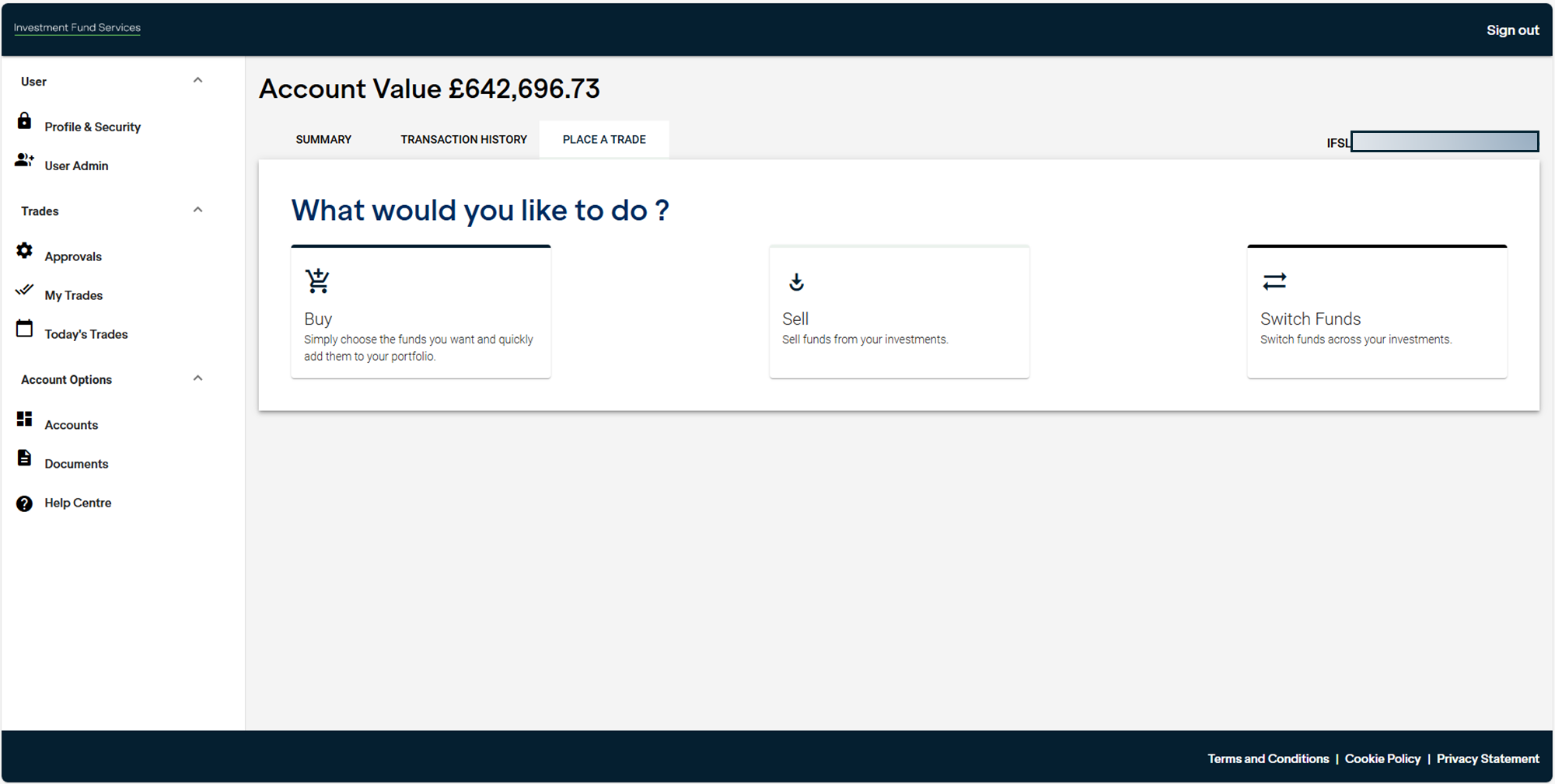 Select an account under the Account Options menu, next select the 'Place a Trade' tab.