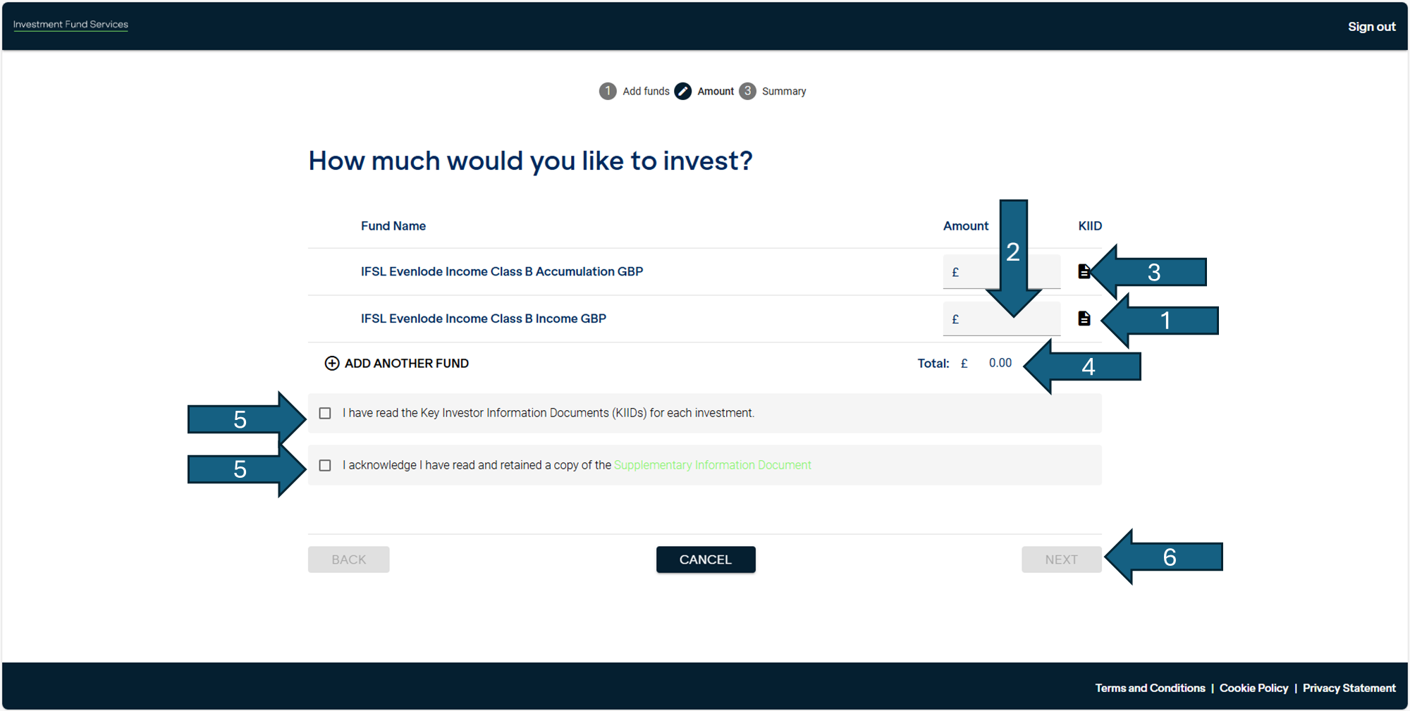 5. Tick the boxes to confirm you have read the KIID and SID for each of the funds chosen.