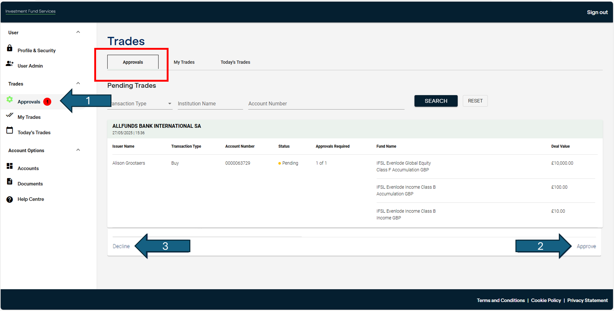 3. Select Decline to reject the trade and enter a short description explaining why you have declined the transaction. The Deal issuer will be notified by email.